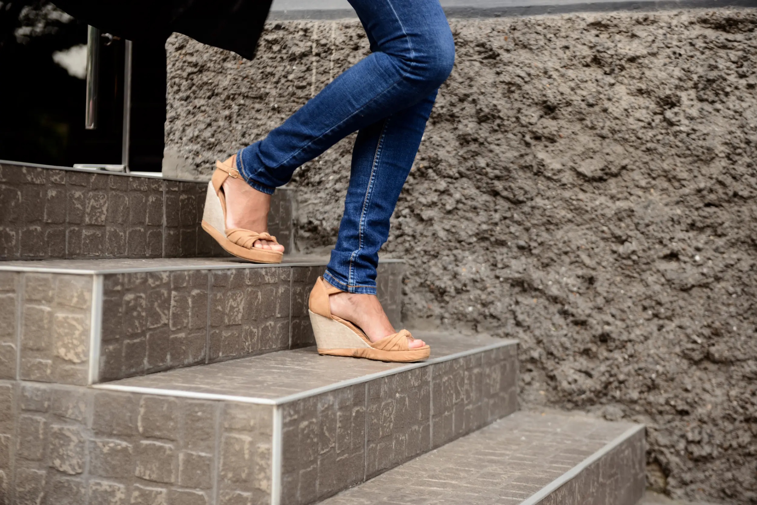 - Busque o equilíbrio: Se o seu sapato anabela for muito robusto ou estampado, prefira combiná-lo com peças de roupa mais minimalistas e de cores neutras para equilibrar a silhueta.